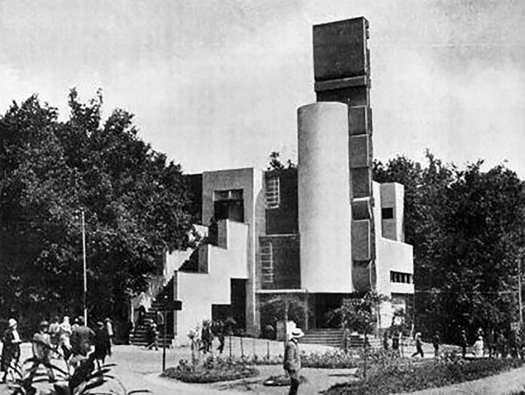 Diagramma idealizzato del Padiglione Futurista progettato da Prampolini per l’Esposizione del Parco del Valentino a Torino nel 1928, realizzato in collaborazione con Fillia e Pino Curtone e con gli architetti neofuturisti torinesi, il padiglione rappresenta una originale concretizzazione dell'architettura neofuturista, caratterizzandosi nelle sgargianti policromie, nei contrasti volumetrici, nella vistosa scritta autopubblicitaria.