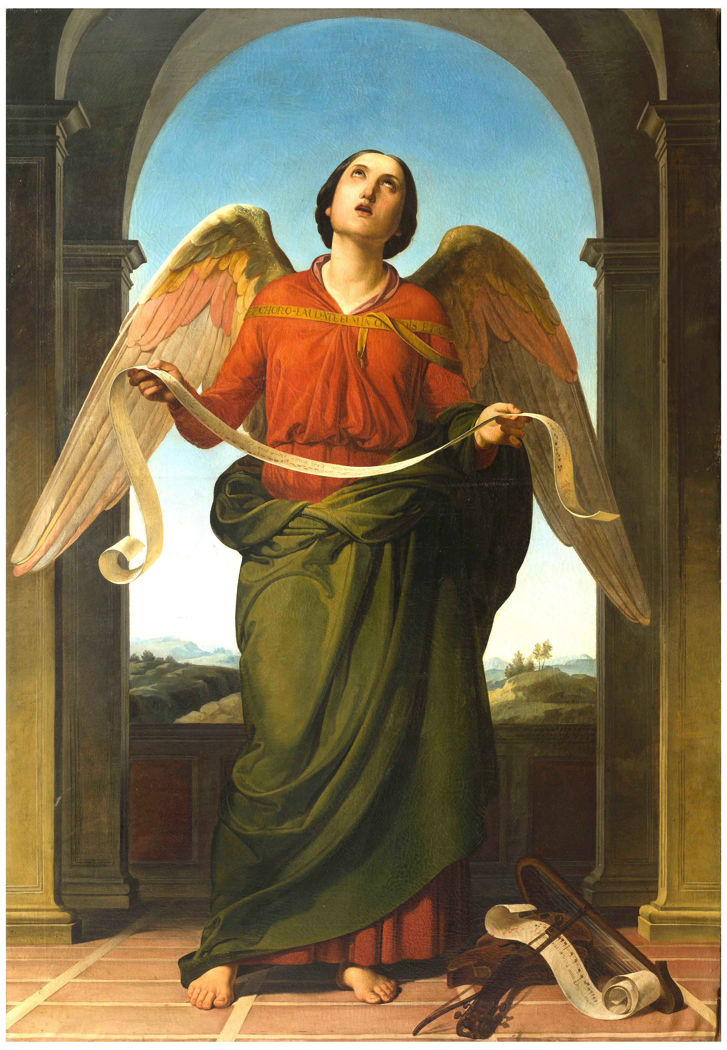 “L'ammirazione di Lega per un'opera di grande rigore stilistico come La Musica Sacra di Luigi Mussini è da mettere in relazione con il successo incontrato dalla tela presso i contemporanei, come esempio tra i più rappresentativi del Purismo toscano. La redazione di Lega del 1857 - che va ad aggiungersi (ma non confusa, ndr.) ad altre copie di artisti anonimi apparse sul mercato in tempi recenti - ancora attesta l'atteggiamento d'inconscia devozione per le concezioni estetiche di quel diffuso "ingrisme" di cui Mussini era stato a Firenze tra i più convinti divulgatori. L'orientamento di Lega verso un tipo di raffigurazione nazarena, di vaga intonazione romantica, trova riscontro nell'impegno profuso nel portare a termine l'anno precedente le prime due delle quattro lunette - La peste e La carestia (nn. 22, 23) - destinate ai sacelli della chiesa della Madonna di Modigliana.”