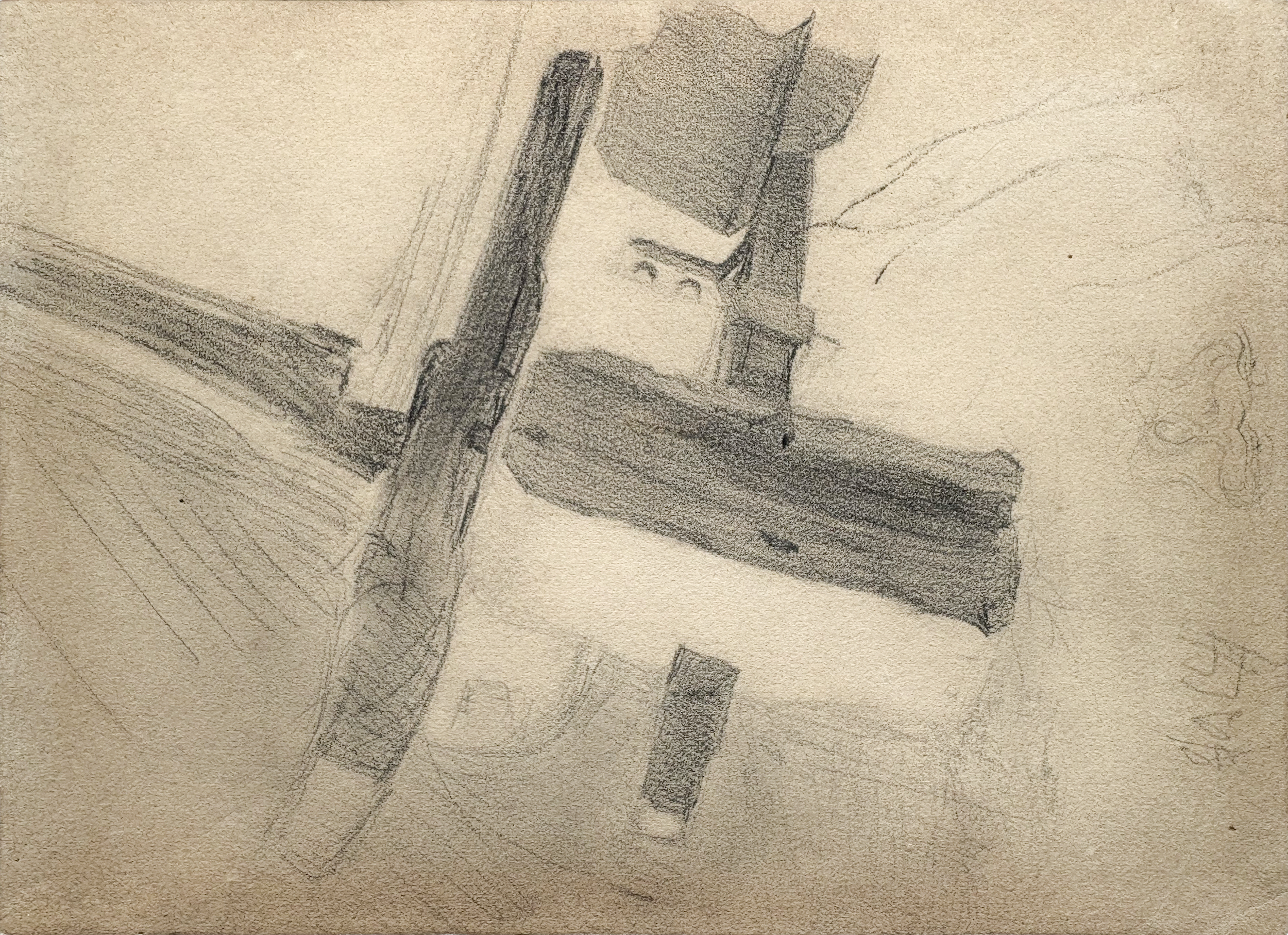 Nello studio analitico della ricerca di Balla alcuni appunti assumono una importanza puntualizzante; tale è questo disegno a matita del 1901 sul freno di un carretto per il trasporto del vino. Inizia quell'interesse per il lavoro, («La pialla nuova» 1902), che culmina con l'opera «La giornata dell'operaio» del 1904. Queste prime ricerche estraggono come essenziale il particolare e lo fanno con un verismo descrittivo.” Luigi Marcucci
