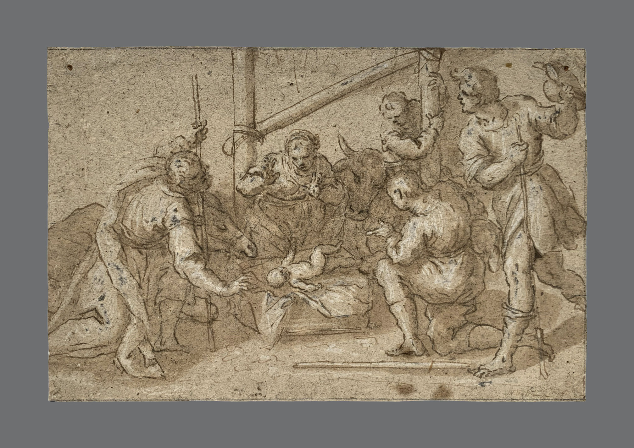 inchiostro bruno, grafite e biacca su carta