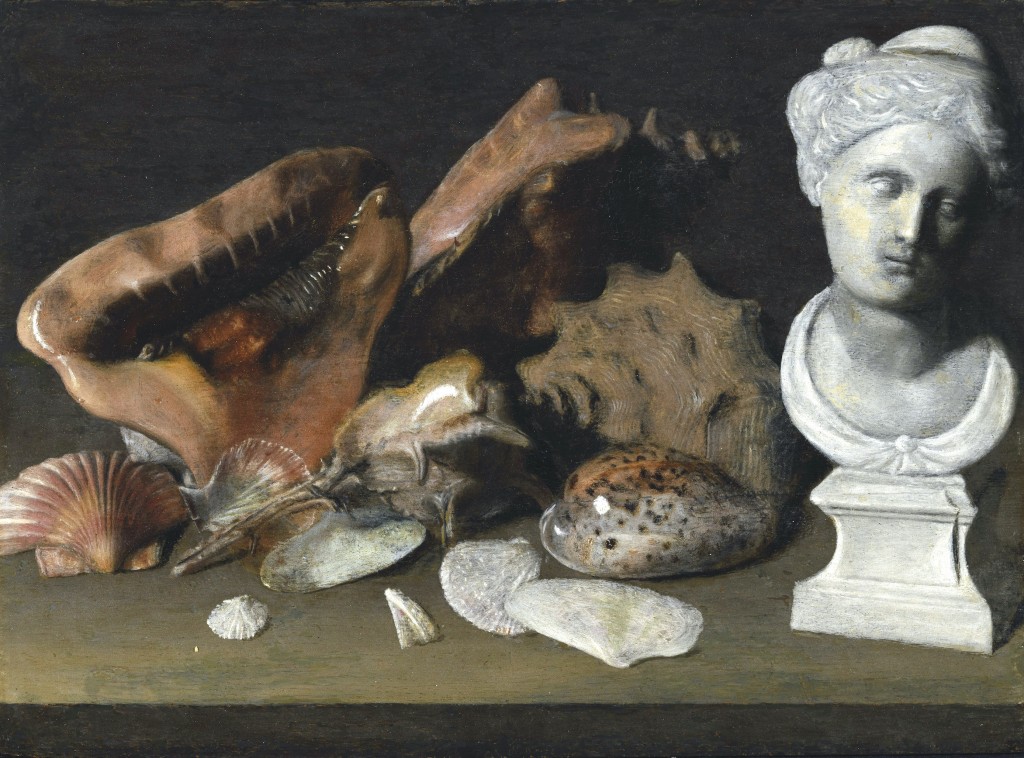 Still life with shelles and little roman marble bust