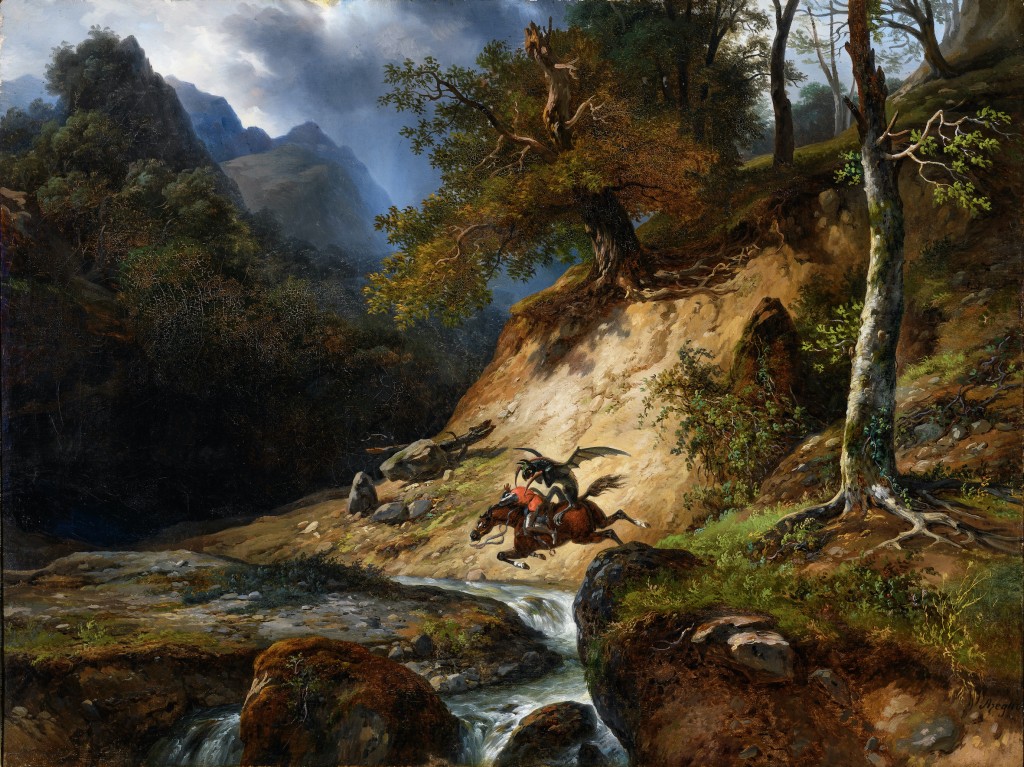 Rinaldo attacked by a monster during ride the horse in the Selva Ardenna